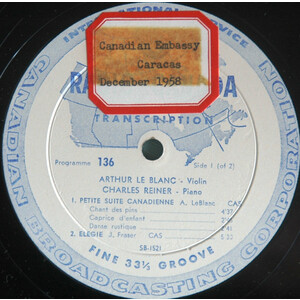 Leblanc, Arthur & Charles Reiner - CBC Radio Canada Transcription Program 136 Side 1 (of 2)