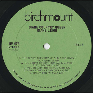 Diane Leigh, the "Queen of Canada's Country Music", earned her crown by winning the RPM Gold Leaf Award five times, as Canada's Top Female Country Singer, from 1965 to 1969! During this period, Diane won the hearts of Country fans across Canada as a regular on the top rated TV show, Carl Smith's Country Music Hall. In 1971 Diane guest starred for nine weeks on the Country Show over CBC Halifax, CBC Toronto, and CHCH Hamilton. Most of Diane's early recordings were chart makers–"Two Shades Of Blue", "Woman And Man", "The Wife You Save", "Me Your Own", and others.
