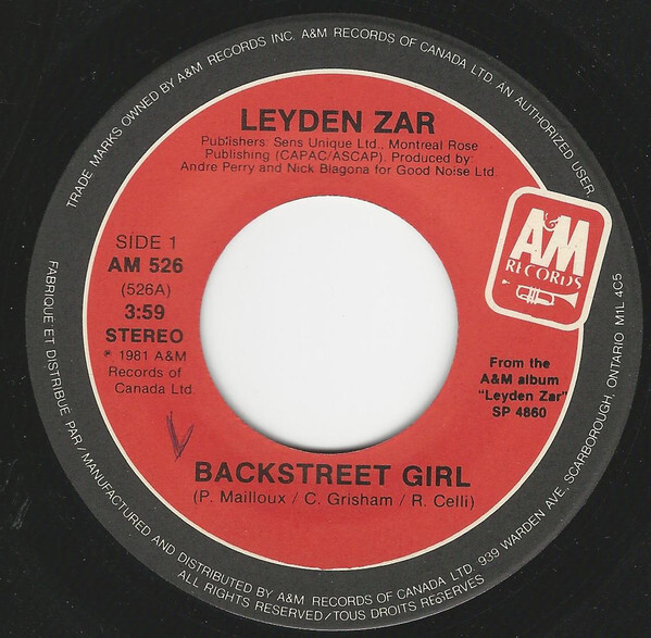 Leyden Zar - Backstreet Girl b/w Danger Zone