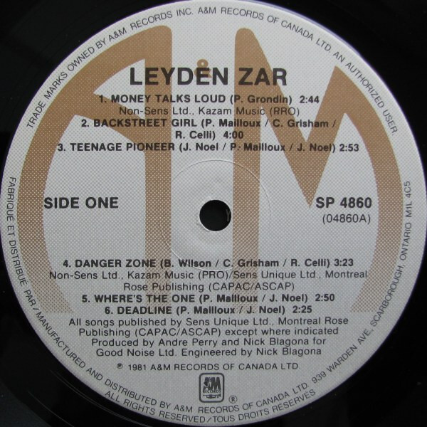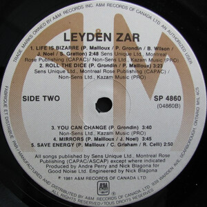 After submitting demos to just about every management company in La Belle Province, Leyden Zar were signed by Michel Regimbauld and Michel Perrotte to Sens Unique Enterprises in 1980. They went to Le Studio at Morin Heights later that year with producers Nick Blagona and Andre Perry, and released their self-titled debut the next spring.