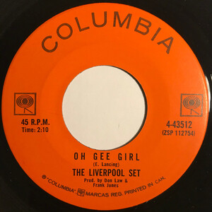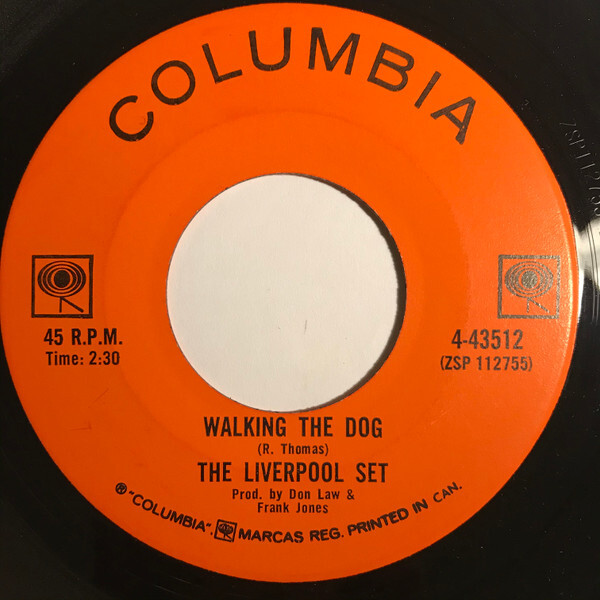 Second Columbia single by The Liverpool Set. The A-side is a cover of Rufus Thomas’s R&B standard ‘Walking the Dog,’ while the B-side, ‘Oh Gee Girl,’ is an original composition by guitarist Eve Lancing. The release followed the national chart success of the group’s debut single and reflects a shift toward a tougher, garage-leaning sound while retaining British Invasion influences.