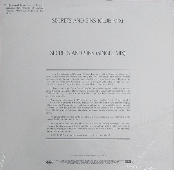 Luba (Lubomira Kowalchyk (Любомира Ковальчук)) - Secrets And Sins (Club Mix) b/w Secrets And Sins (Single Mix)