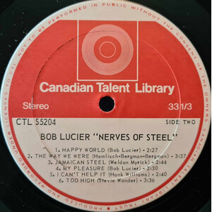 Lucier’s own recording legacy centres on Nerves of Steel, released by the Canadian Talent Library in 1977 and recorded at Manta Sound in Toronto. The album brought together major studio figures of the day — including Doug Riley, Tom Szczesniak, Jack Zaza, Stephanie Taylor, Judy Tate, and a full string section — under producer and arranger Bobby Edwards. The record remains one of the best-known steel-focused albums produced in Canada, and a clear document of Lucier’s melodic and textural approach to the instrument.