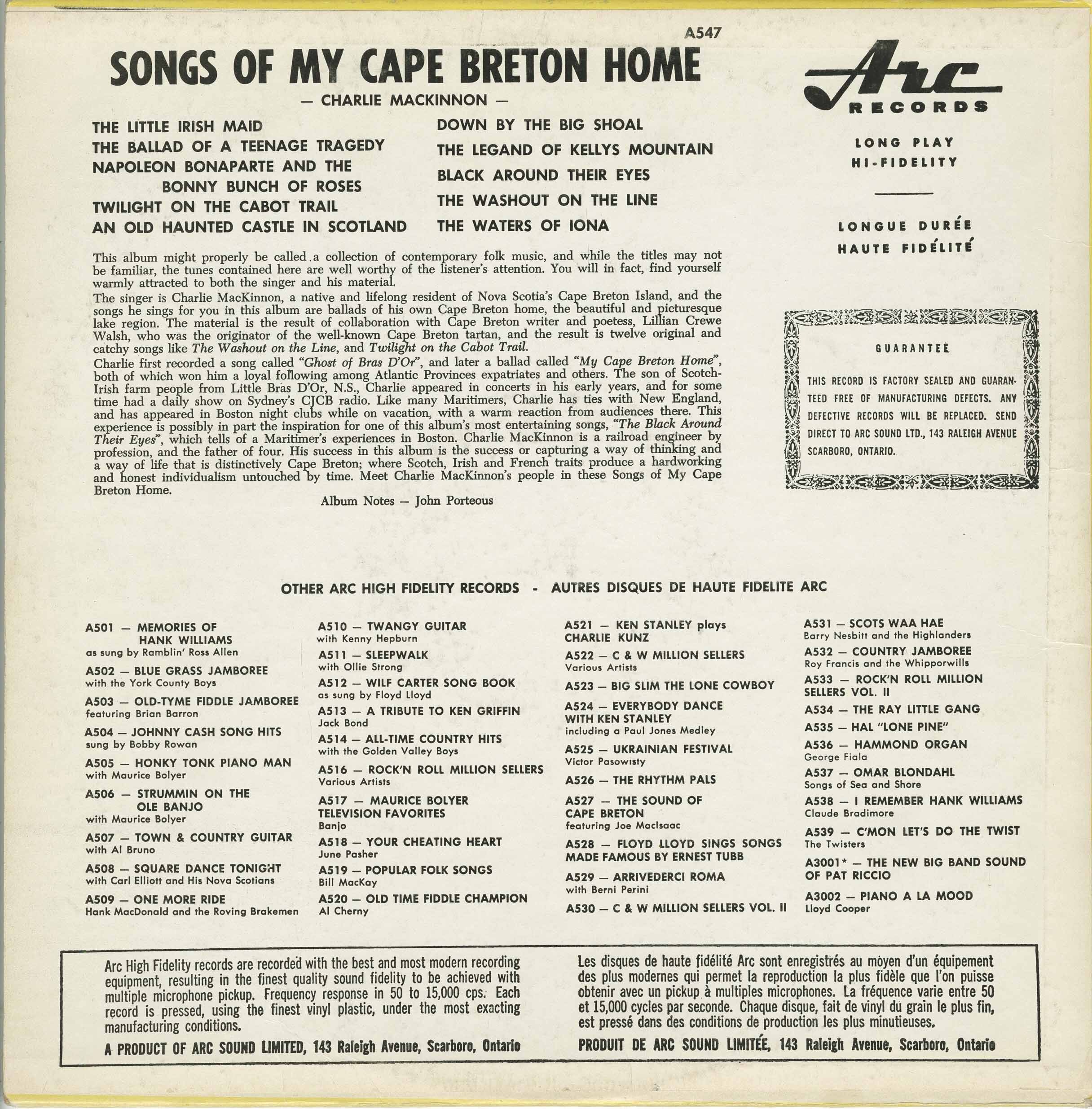 Country & Western, Cape Breton, Nova Scotia, Folk, 1960's, Arc Records