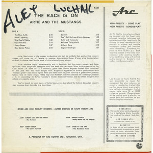 "Artie MacLaren is the answer to skeptics who feel it's unlikely that another top country singer will come out of Canada to assume international fame. If ever a big league talent existed, it shows itself in the work of this talented young singer. Artie exhibits style, showmanship and a fantastic feel for country music, and these qualities have surprised everyone who has seen him perform. When Artie appeared on the Carl Smith TV show on CTV recently, guest star Porter Wagoner looked up a rehearsal to see just who the "hot" singer was. Wagoner's appraisal of Artie's performance was "Simply great" and you'll agree when you hear these 12 great tunes by a great new Canadian talent. One of these songs, "Skip Hop and Wobble" has been charted as a leading Canadian C&W by RPM, Canada's music business weekly, and the other songs on this album are equally great. You're bound to hear more of Artie MacLaren, just about the hottest Canadian country star to come down the pike for a long time."