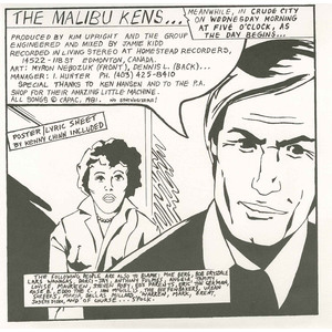 In 1981, the Malibu Kens released one of Edmonton's earliest independent punk singles, featuring "Crude City" and "Wednesday Morning at 5 O'Clock (As the Day Begins...)" on the Exploding Debut label. The single was co-produced by the band and Kim Upright of the Modern Minds, who later co-founded Jr. Gone Wild with Mike McDonald. The insert for the single was designed by Ken Chinn, also known as Mr. Chi Pig, who would later gain fame with SNFU.