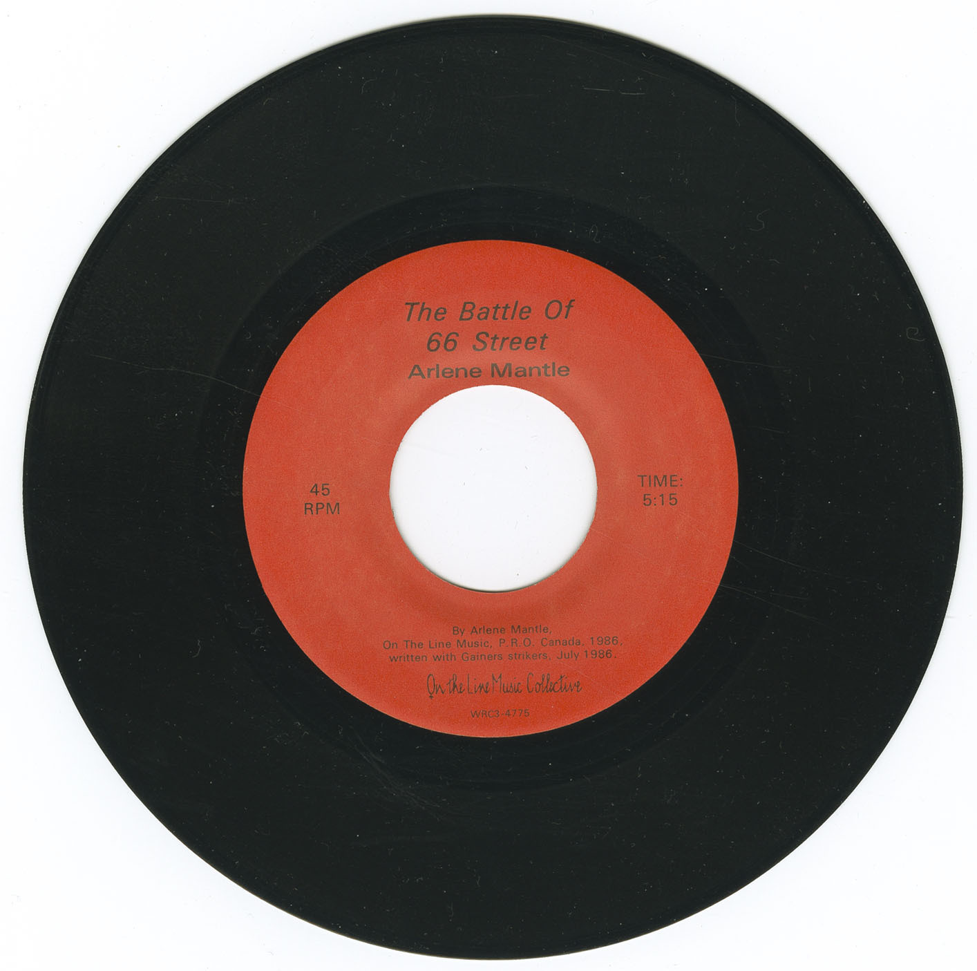 In 1986, Mantle co-wrote the protest anthem The Battle of 66 Street in collaboration with striking meatpacking workers at the Gainers plant in Edmonton, Alberta. Written during a collective songwriting session on July 21, 1986, and released as a 45 rpm single by On the Line in partnership with the United Food and Commercial Workers Union, the track became a frontline anthem for labour rights. The B-side featured a newly adapted version of “Which Side Are You On?” with lyrics by David Durning, further connecting Mantle’s work to the folk protest lineage.