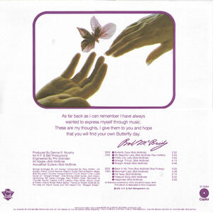 McBride quickly returned to the studio to complete his second solo LP, Sea of Dreams (1973), once again produced by Dennis R. Murphy. The album features powerful songwriting and magical orchestrations, with contributions from his brother Danny McBride, pianist and arranger Jim Ackley, and guitarist Chuck Aarons. Although it followed closely on the heels of Butterfly Days, Sea of Dreams did not match the commercial performance of its predecessor. McBride’s contract with Capitol Records ended shortly thereafter.