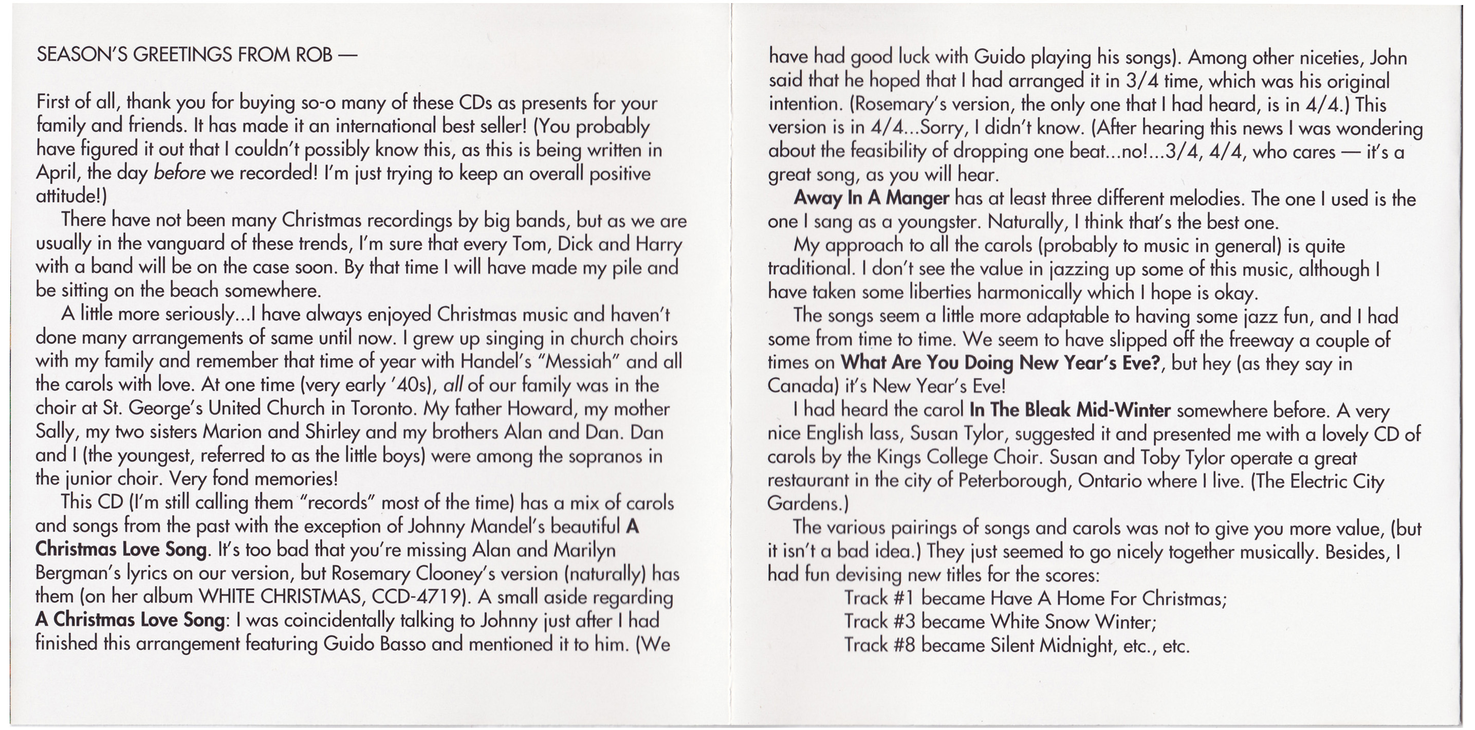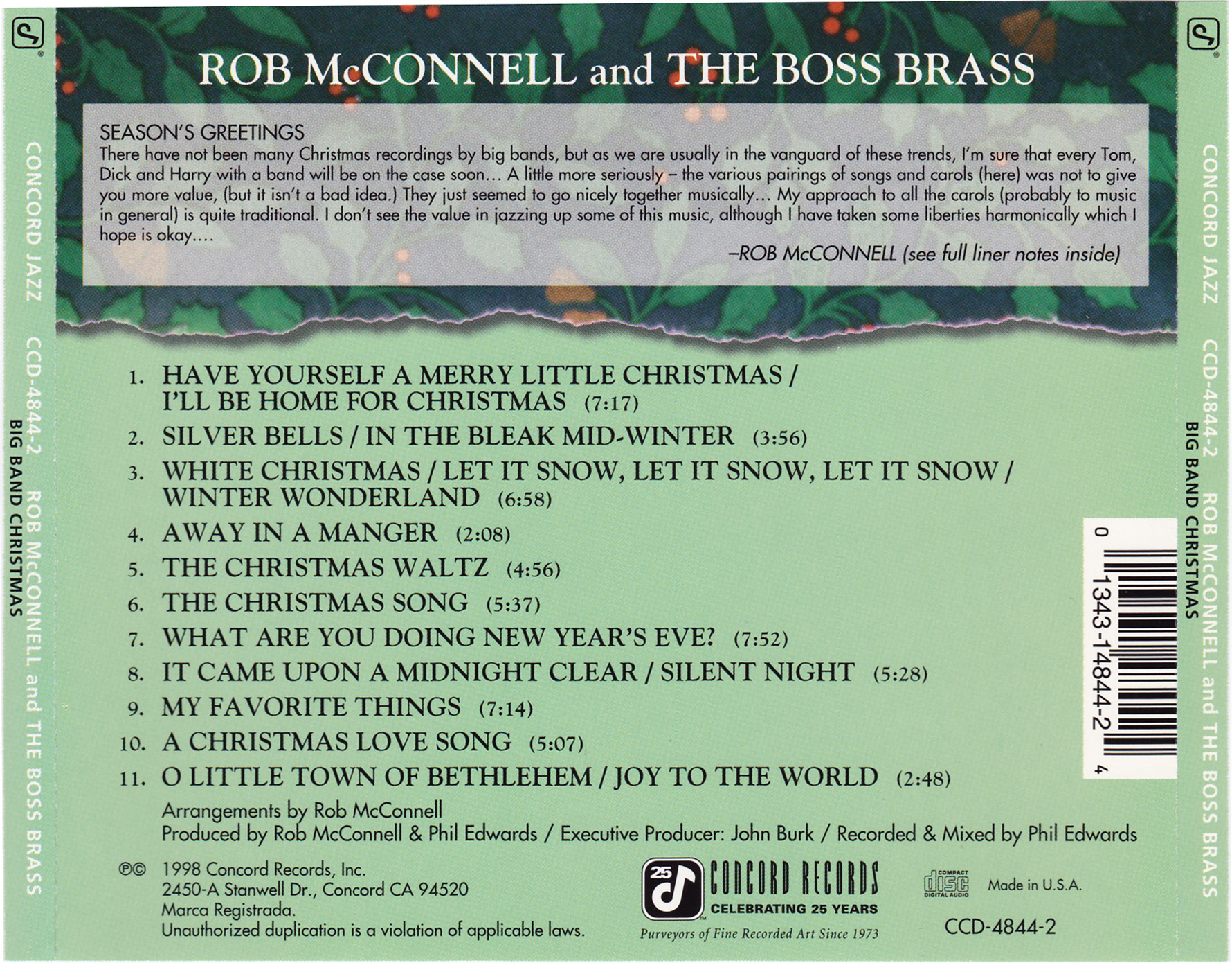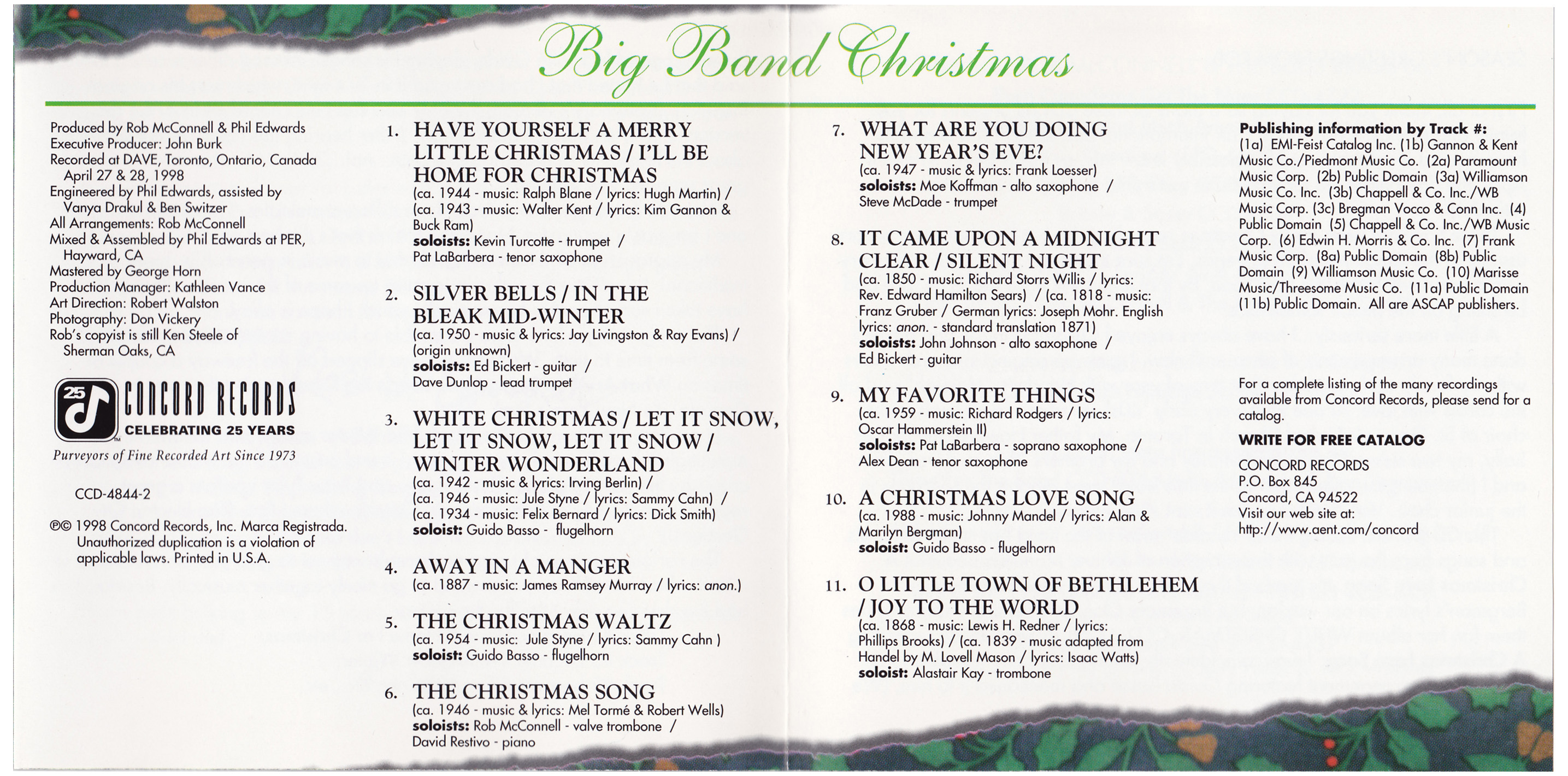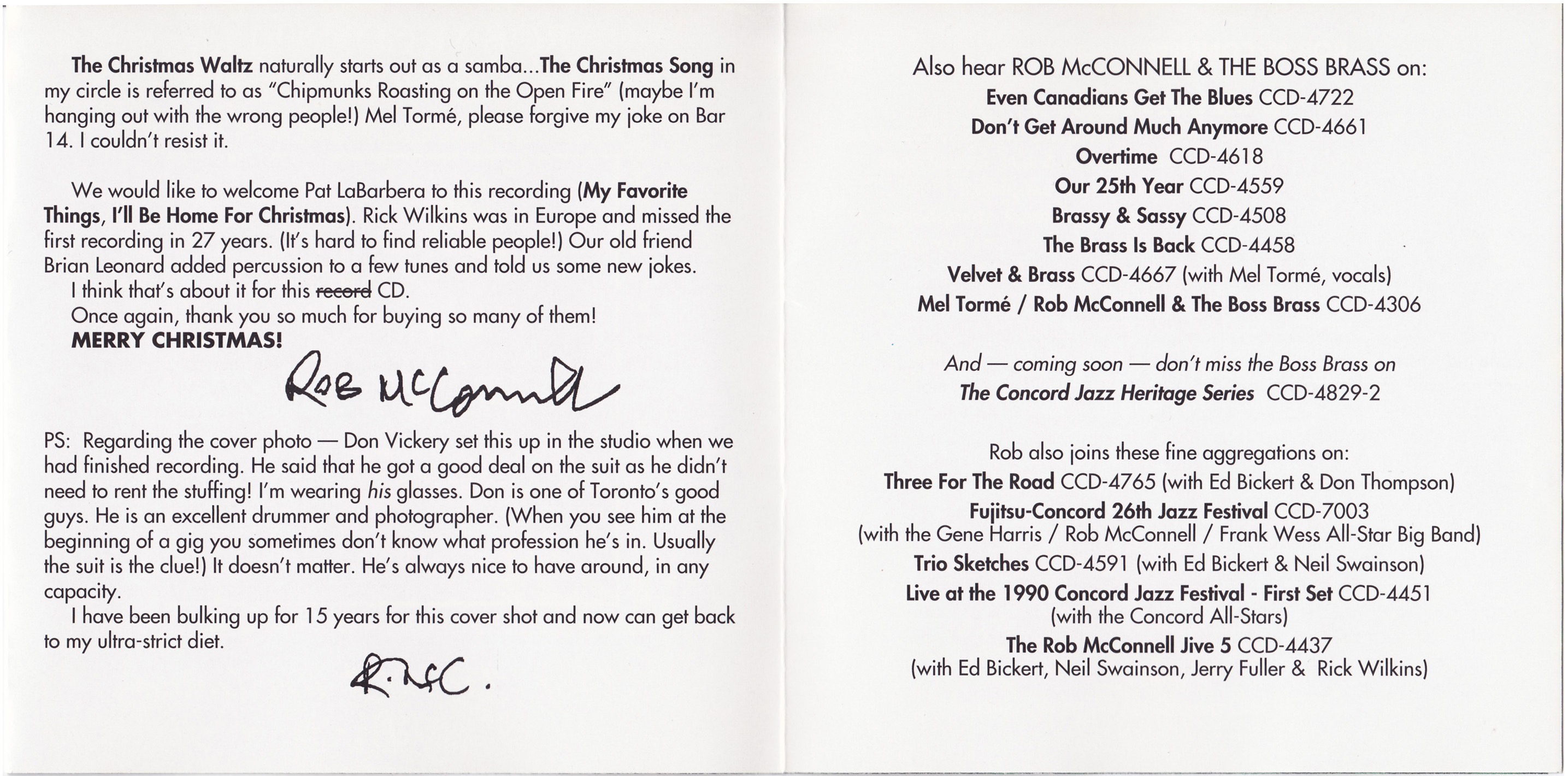 Rob McConnell passed away on May 1, 2010, at the age of 75. His legacy endures not only in the recordings of The Boss Brass, but in the generations of musicians and listeners who came to see Canadian jazz as something world-class. As broadcaster Ross Porter once remarked, “Rob was one of our greatest gifts to music. His stature, talent, and importance in Canadian jazz should rank him with Oscar Peterson.”