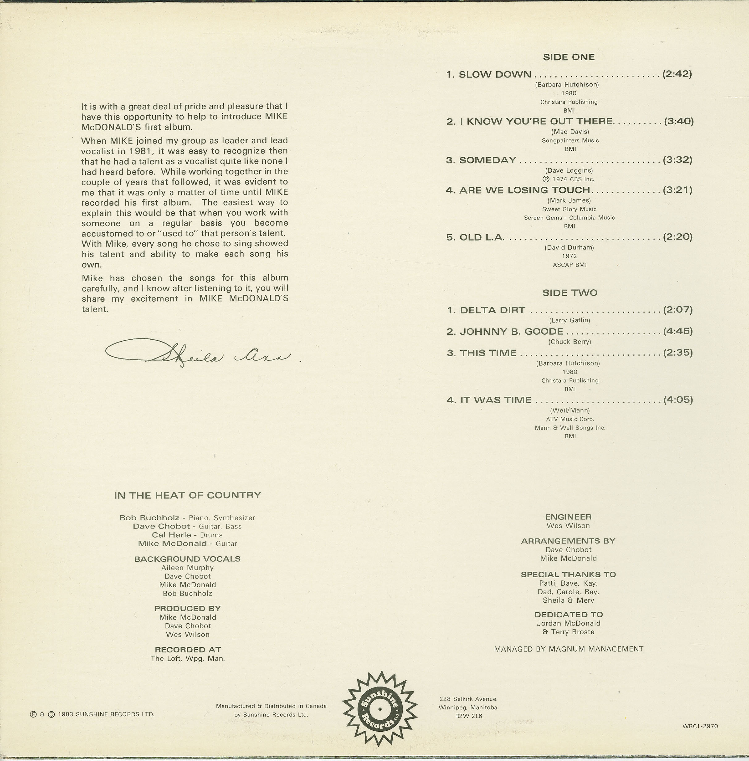 Produced by Mike McDonald, Dave Chobot and Wes Wilson
