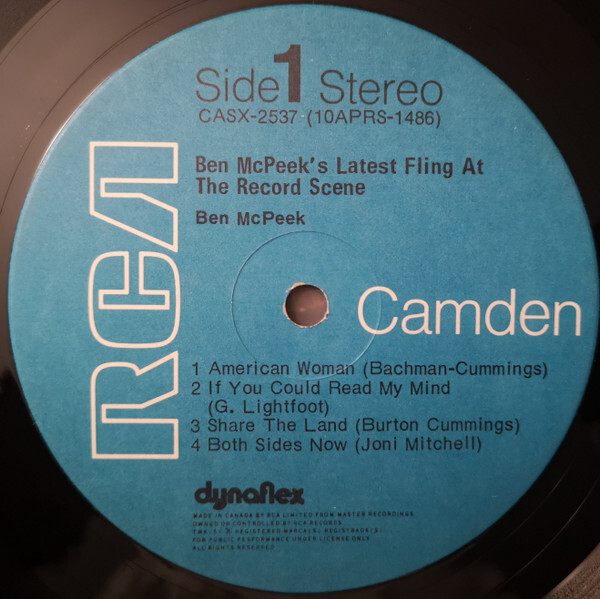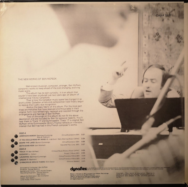 His first recorded album work came through the Canadian Talent Library. In 1966, McPeek released Colourful Configurations Conceived And Conducted By Ben McPeek (CTL M-1080), a mono LP that introduced him as a composer-arranger with a distinctive orchestral voice. The same recordings were subsequently retitled and reissued under various configurations, most notably as The Original Sounds Of Ben McPeek, His Voices And His Orchestra, appearing on Canadian Talent Library, RCA Victor, and later RCA Camden. These releases form the foundation of McPeek’s recorded catalogue and document his early orchestral and ensemble writing.