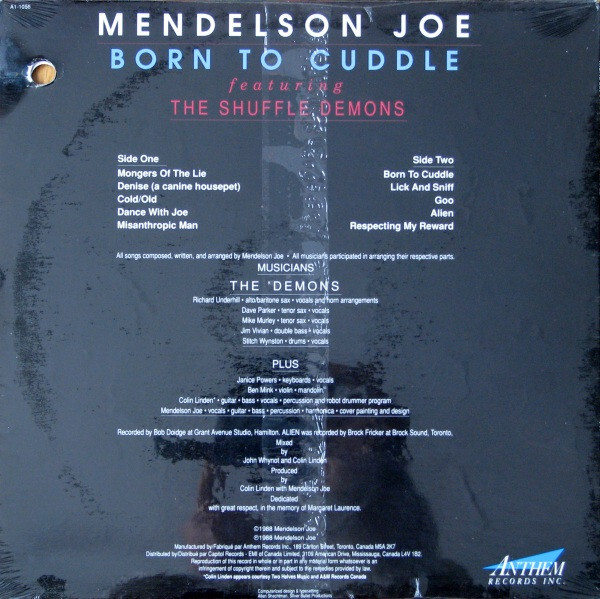After Mainline first dissolved in 1972, Joe struck out on his own. At first recording as Joe Mendelson and later adopting the permanent stage name Mendelson Joe, he developed a solo career that was as uncompromising as it was unpredictable. His gravelly voice, idiosyncratic phrasing, and stripped-down approach gave his blues a confrontational edge. Over the next four decades he released more than a dozen albums on labels ranging from small independents to Anthem, often collaborating with musicians like Ben Mink, Colin Linden, Gwen Swick, and the Shuffle Demons. Songs like “Dance with Joe” and “Addicted” captured his off-kilter humour and blunt social commentary, while his live shows—sometimes just him and a guitar—were equal parts performance art and sermon.