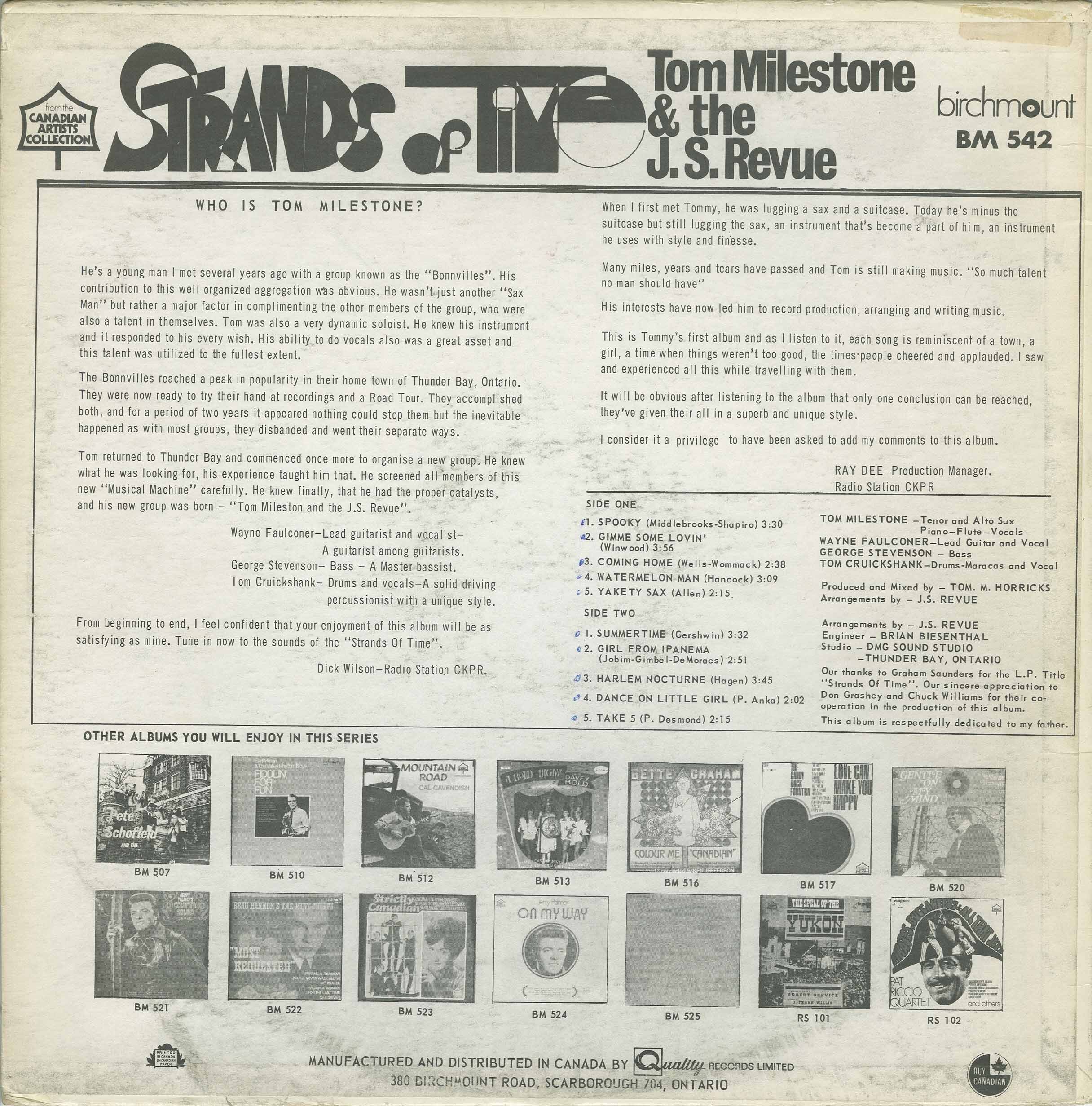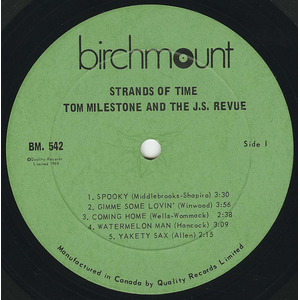Although credited to Tom Milestone, this was a pseudonym for Tom Horricks, who also handled production duties, whilst Jarvis Street Revue provide the backing. Musically, it is "rough" lounge-jazz. Some of the tracks are excellent and the album is mainly instrumental with no real vocals. The rock background is evident on Watermelon Man and Gimme Some Lovin' whilst the most "psychedelic" track is a version of Take Five, with a bizarre guitar solo that is hopelessly NOT jazz but sounds like a slowed down Keith Richards / Chuck Berry copy.