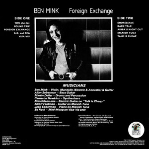Ben Mink also has played on recordings by Dan Hill, Geddy Lee, Anne Murray, Ronnie Prophet, Raffi, the guitarist Ken Ramm, Rush, Sharon, Lois & Bram, Sylvia Tyson, and many others. He has produced or co-produced recordings by Susan Aglukark, the Barenaked Ladies, Finjan, Marie-Lynn Hammond, Geddy Lee, the Romaniacs, and Stringband; Israel's Chava Alberstein; the US klezmer band the Klezmatics; and US rocker Ann Wilson. His own 1980 LP of instrumentals, Foreign Exchange (Passport PB-2024, recorded with members of FM), mixed the colouring and melodic influence of Eastern European folk music with the rhythms and technology of rock and the improvisation of jazz, heralding an uncommon ability to move seamlessly among genres as varied as easy-listening pop, klezmer, and country. Working in conjunction with FM, in collaboration with other composers (eg, Ramm, Allan Soberman), or on his own, Mink has composed themes or full scores for feature and short films and for TV and radio series. His Male Chauvinist Jig (recorded in 1975 with Stringband) was a popular theme on CBC radio and his "Turn Me Round" was chosen as the closing song (performed by lang) for the 1988 Calgary Winter Olympics.