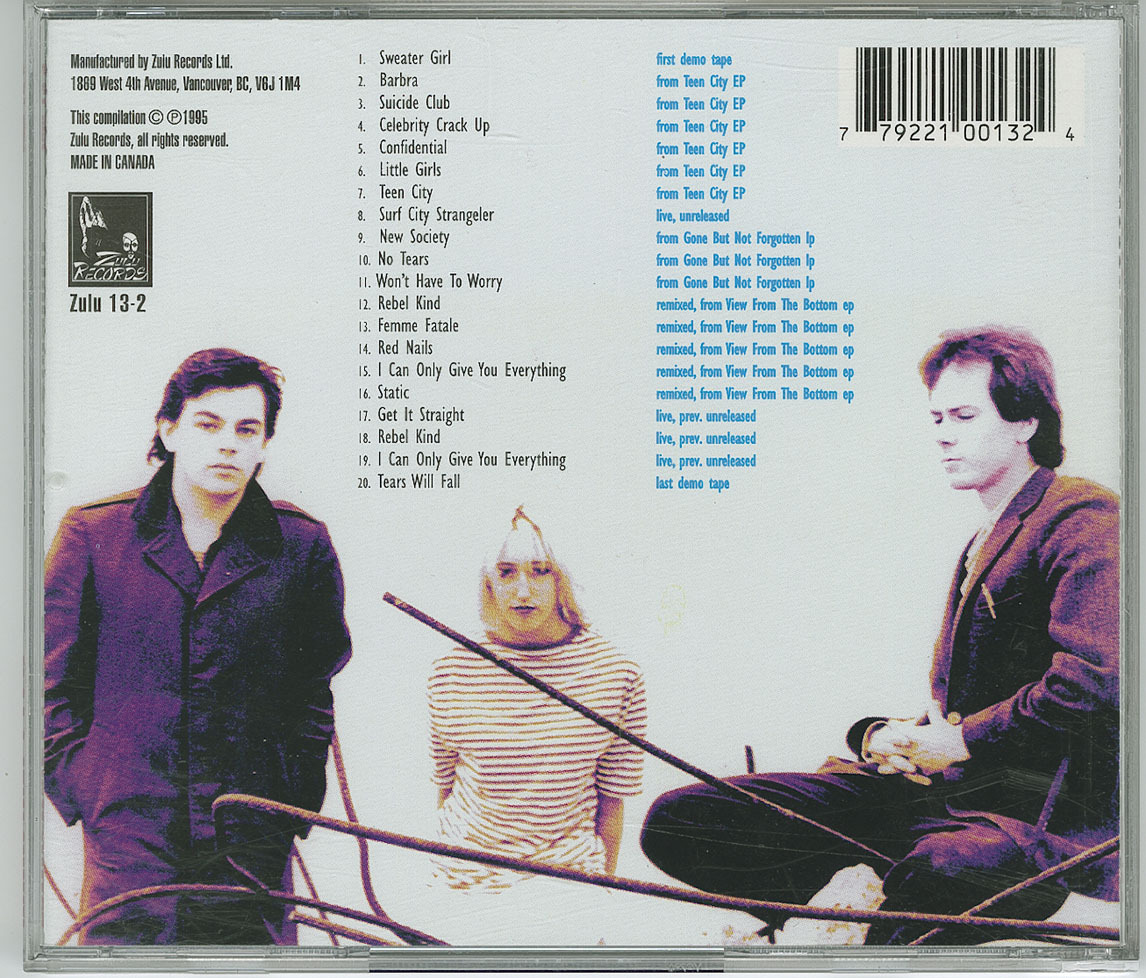 The band did not last that long, but they were part of the emerging Vancouver club scene at the time playing at Vancouver's answer to CBGB's, the Budda nightclub. The band only had one full length album, but released a bunch of EP's. In 1980, Strictly Confidential was released on the Quintessence label. Also the EP titled Teen City was released in 1980. The EP featured six songs and is regarded as one of the if not the best releases from the band. It contained the track for which the band is commonly known for "Barbra", a song that sounds influenced by Ramones, but also a pop song in a different way. Other great tracks include "Suicide Club", "Celebrity Crackup", and "Teen City".