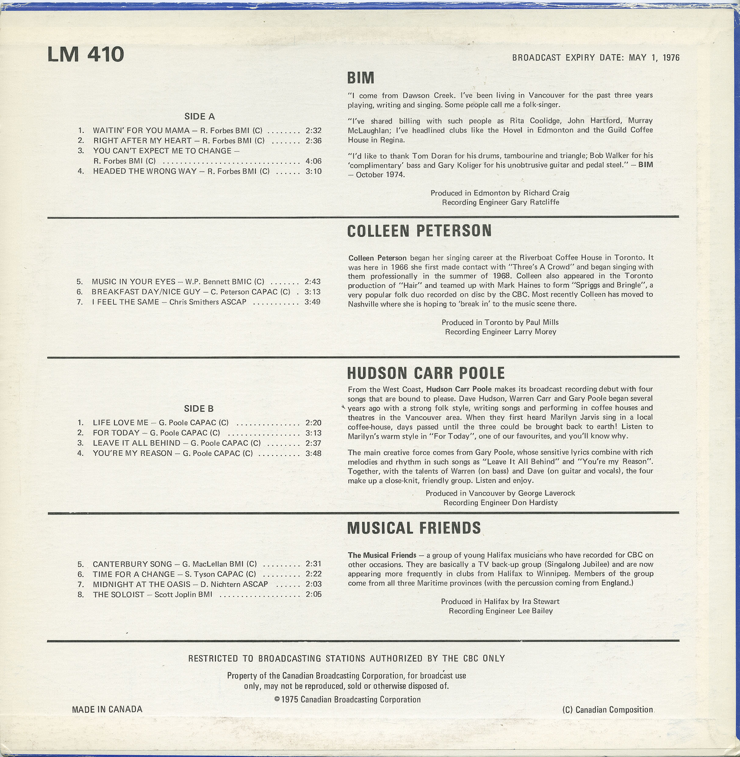 Label: CBC Radio Canada LM 410