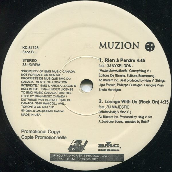 Madlocks appear on Side A; Muzion on Side B.