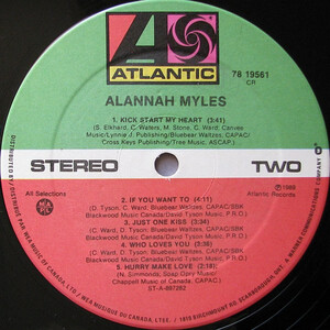 The ‘Alannah Myles’ first self titled album released in Canada in the spring of 1989 produced four Top 40 hits, “Love Is”, “Black Velvet”, “Lover of Mine”, and “Still Got This Thing”. Released internationally in 1990, Atlantic records finally hit pay dirt with her number one international smash, “Black Velvet”, winning a Grammy award for best female rock performance, along with several Canadian Juno Awards, a Diamond award for sales in excess of one million in Canada – the only artist who still retains this status for a debut record. After it’s first year of release Black Velvet received the ASCAP award for over one million radio plays and the ASCAP ‘Millionaire Award’ in 2005 for over 5 million radio plays. SOCAN in Canada awarded the songs, “Black Velvet” and “Lover Of Mine” each with an award for over 100,000 plays in Canada in 2005 with her #1 hit ‘Song Instead Of A Kiss” to follow.