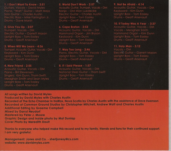 The title speaks volumes. David Myles is a fresh force on the Canadian entertainment landscape who has dared to put it all on the line with this independent release ... creativity, vocal versatility and musical dexterity. The cd is a powerful and stylish blend of jazz, blues, gospel, pop and folk influences. His trademark enthusiasm and likeability shine through on this disk.