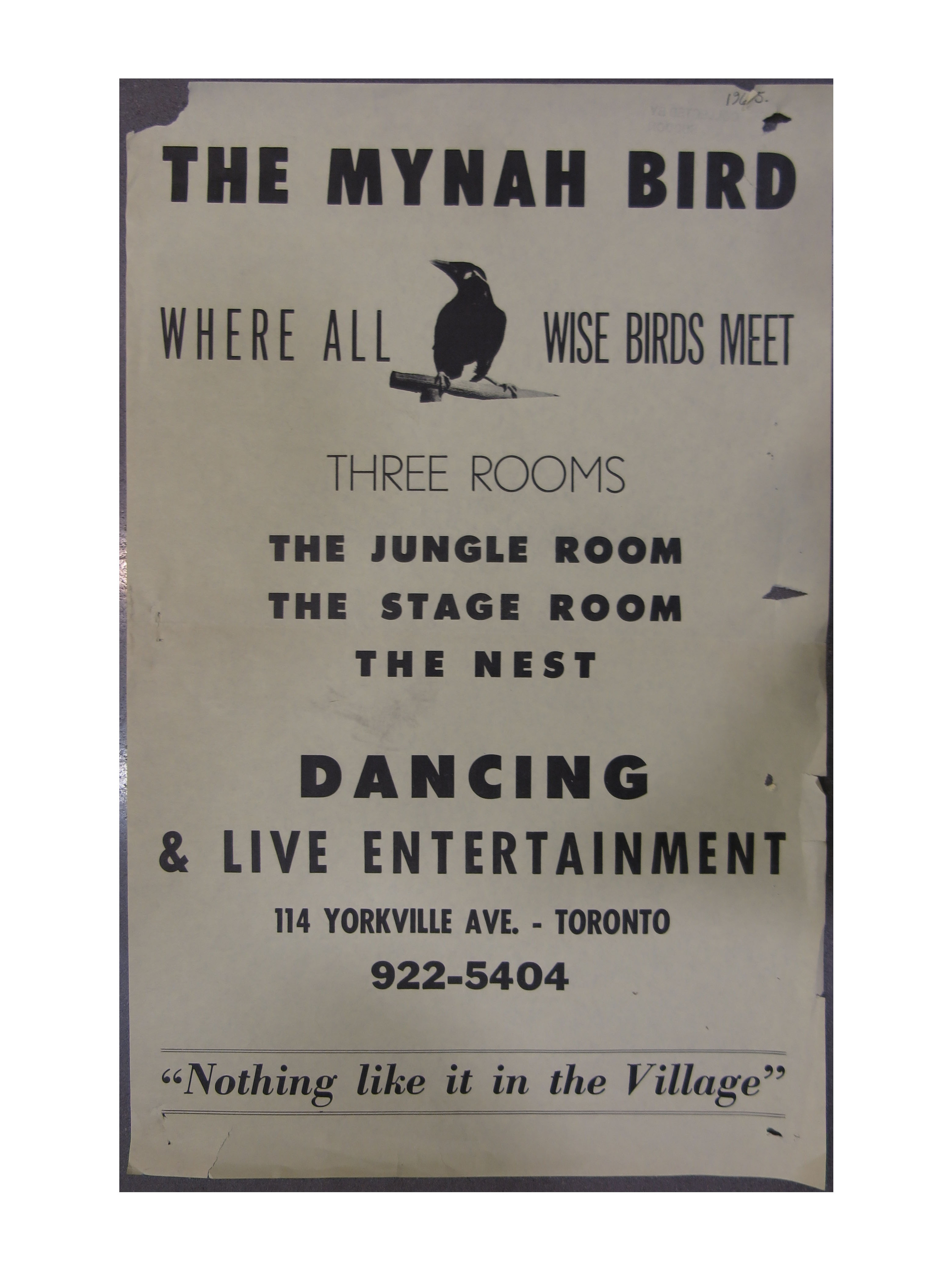 The group's roots trace back to the bohemian Yorkville scene, where a teenaged Rickie Matthews (Rick James), AWOL from the U.S. Navy, walked into the El Patio club in uniform and was invited onstage by bassist Nick St. Nicholas to sing with a loose outfit known as the Swinging Doors. Alongside Ian Gobel (guitar) and Rick Cameron (drums), the raw charisma of Matthews soon took center stage. Their popularity at the El Patio attracted the eccentric businessman Colin Kerr, who renamed them The Mynah Birds after his pet bird, Rajah, and insisted the band adopt black-and-yellow uniforms to match.