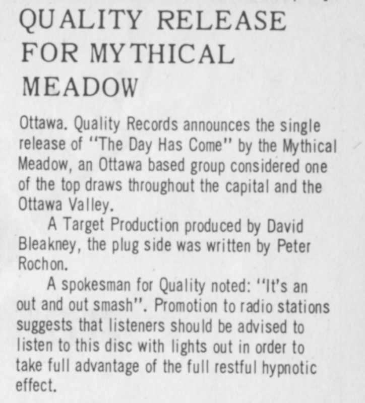 Such a group may be found here in Ottawa and they go by the name of The Mythical Meadow. They are five boys who have combined the right ingredients to come up with a tight sound and claim to have one of the best shows to be found anywhere in Canada.