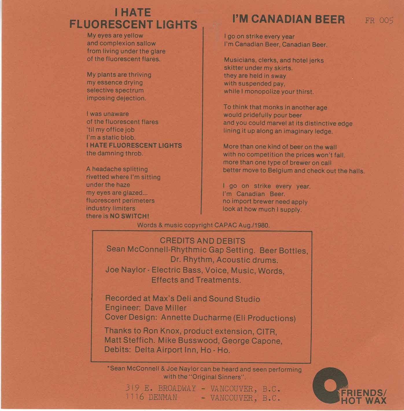 Naylor, Joe - I'm Canadian Beer b/w I Hate Fluorescent Lights