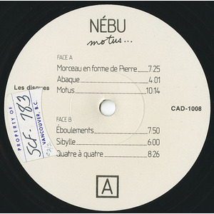 Jean Derome was born in Montreal, Quebec on 29 June 1955. He studied music theory in Montreal at Cégep de Saint-Laurent between 1972 and 1975, and flute at Conservatoire de Musique du Quebec between 1975 and 1979. He also taught music theory and flute in Montreal colleges between 1974 and 1983. During his studies, he formed his first band Nébu in 1973, one of Quebec’s first avant-garde jazz groups. A trio with Derome on flute, pianist Pierre St-Jacques and bassist Claude Simard, Nébu played "classically-informed contemporary jazz". They toured extensively in Quebec, performed at the Festival de Musique Ouverte de Châteauvallon in France in 1977 and at the inaugural Montreal International Jazz Festival in 1980. Nébu made two albums, Nébu (1978) and Motus (1980) before disbanding in 1981.