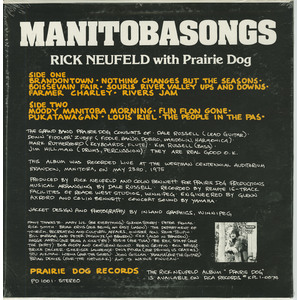 Rick Neufeld was born to a prairie farmer in Boissevain, Manitoba, near Winnipeg, Manitoba. He released his third and final album, "Manitobasongs" in 1978 on his own private label: Prairie Dog Records PD 1001. Rick Neufeld wrote the song "Moody Manitoba Morning", made famous by The Bells. Rick made an appearance on the Wild Rice album in 1972 as well as the CBC "Touch the Earth comp" in 1981. With Canadian classics like "Moody Manitoba Morning", "Louis Riel", "The People in the Pas", "Flin Flon Gone" and "Brandontown", Rick Neufeld played an important part of creating and preserving Manitoba music heritage. Too bad this was his last album....