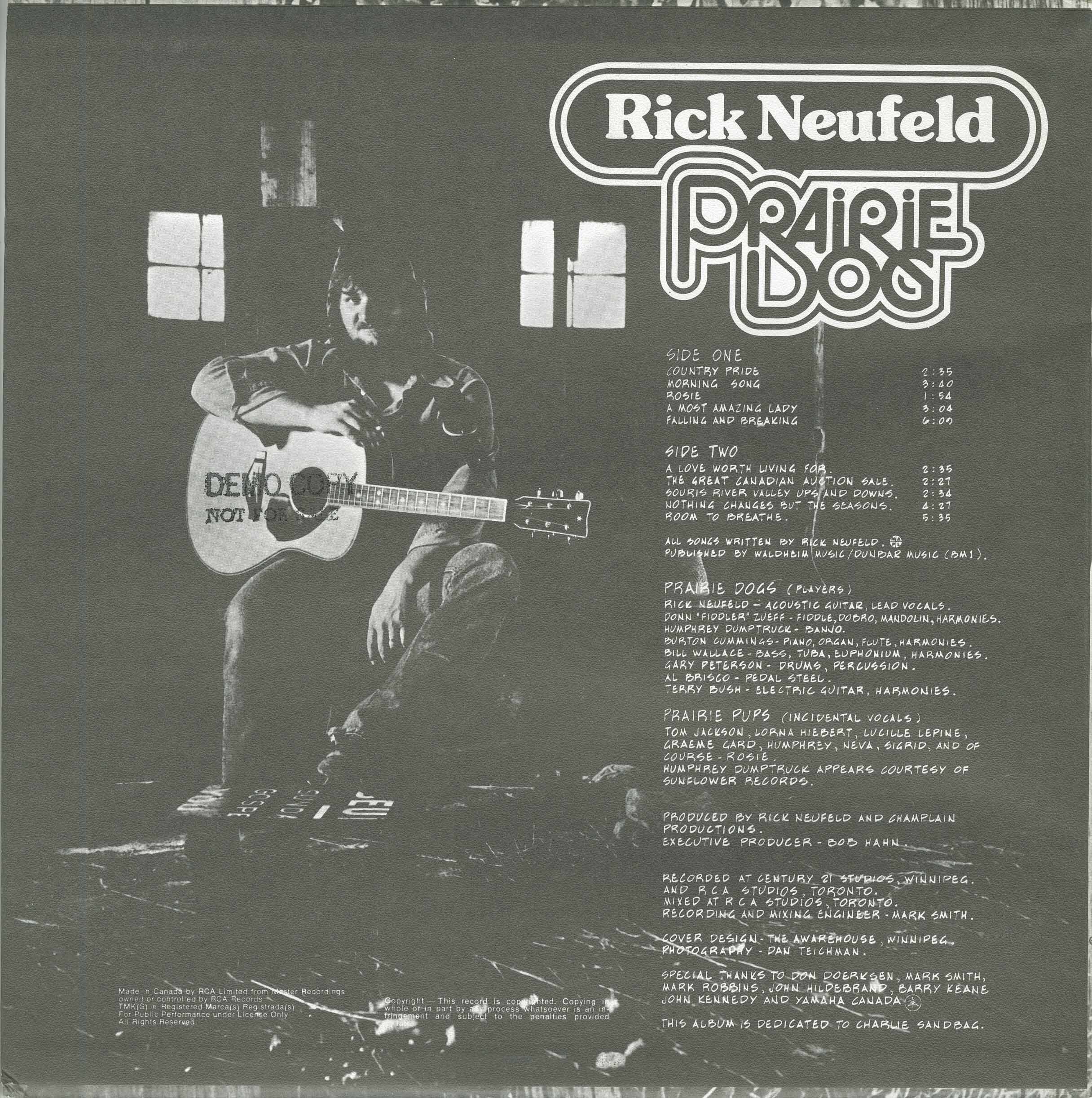 His RCA Victor album Prairie Dog (1974) marked a step into a broader studio environment, featuring contributions from Burton Cummings, Bill Wallace, and Garry Peterson of The Guess Who, along with longtime collaborator Terry Bush. Despite the larger production context, Neufeld’s songwriting remained grounded in prairie themes, with songs such as “The Great Canadian Auction Sale” and “Souris River Valley Ups and Downs” reinforcing his commitment to regional storytelling.