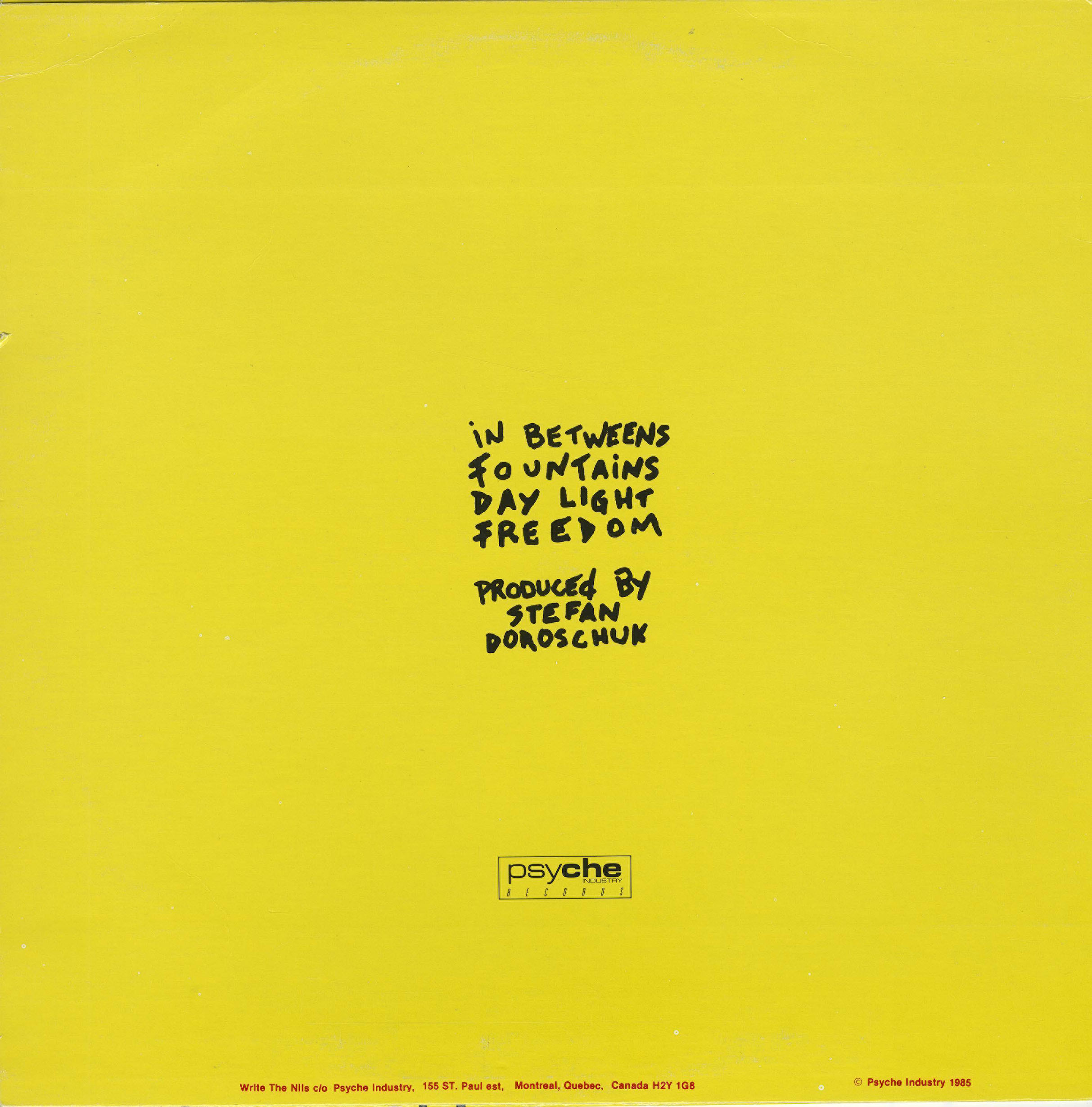 Recorded at La Majeure Studios, Montreal, July 85 The Summer Of Love.