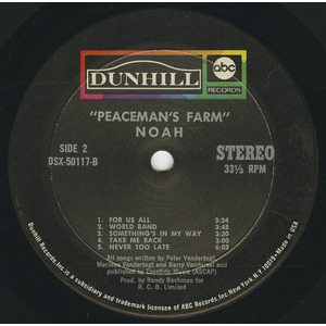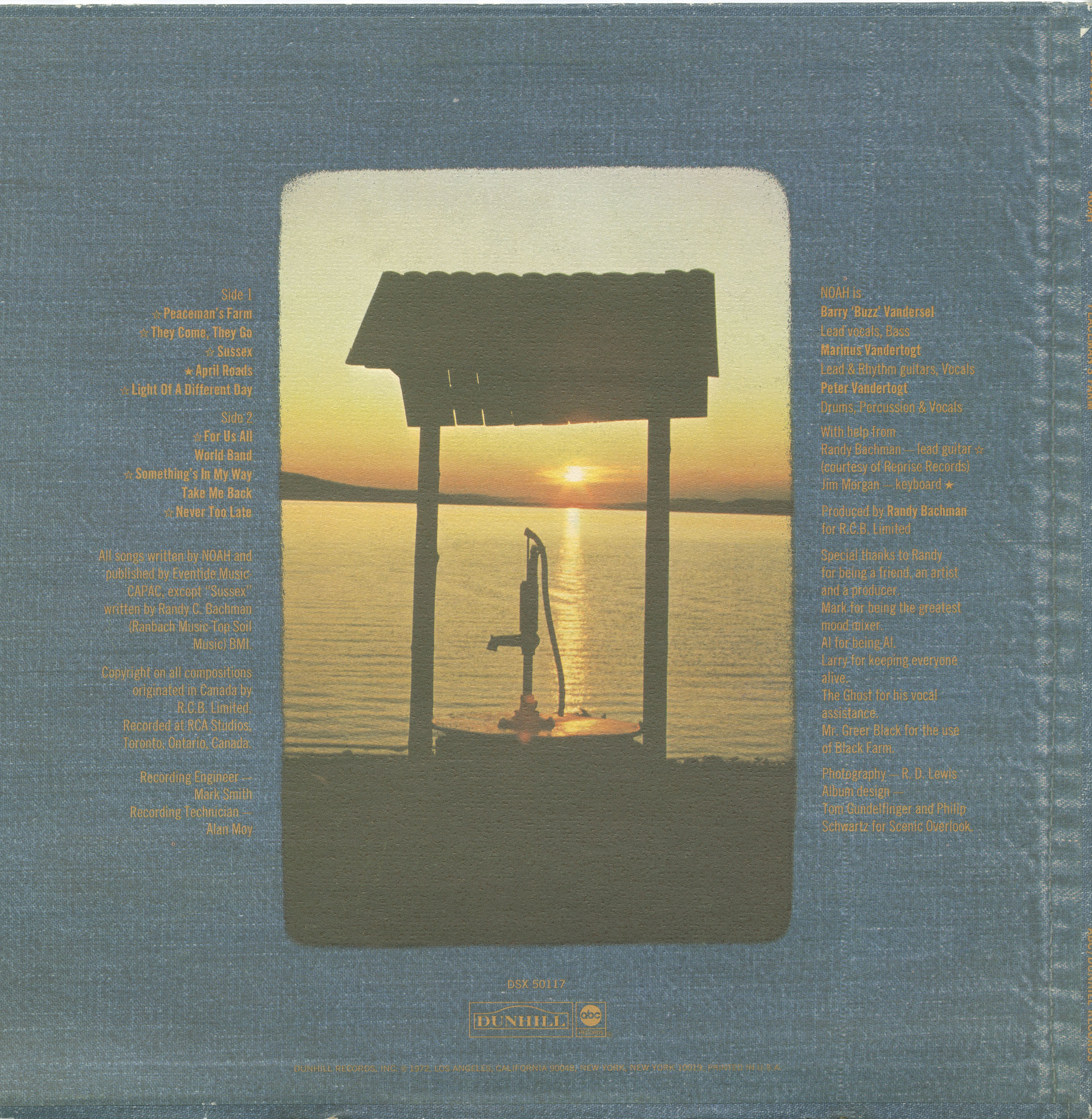 A move to ABC/Dunhill marked the most significant phase of the band’s career. Their second album, Peaceman’s Farm (1972), was produced by Randy Bachman, who also contributed guitar performances and wrote the standout track ‘Sussex’. Keyboardist Jim Morgan added prominent organ work, expanding the band’s progressive reach. Songs such as ‘World Band’ showcased Noah’s ambition and would later be covered by the American group Griffin.