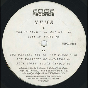Numb is an influential Electro-Industrial band that was based in Vancouver, Canada. It was founded by Don Gordon in 1986. Following his Suspended single in 2000, Gordon retired the project for nearly two decades, with the 2019 album release Mortal Geometry marking his return. This was their first of 7 independent releases. This 1987 album was re-released with 3 previously unreleased tracks in 1997 and is available from bandcamp.