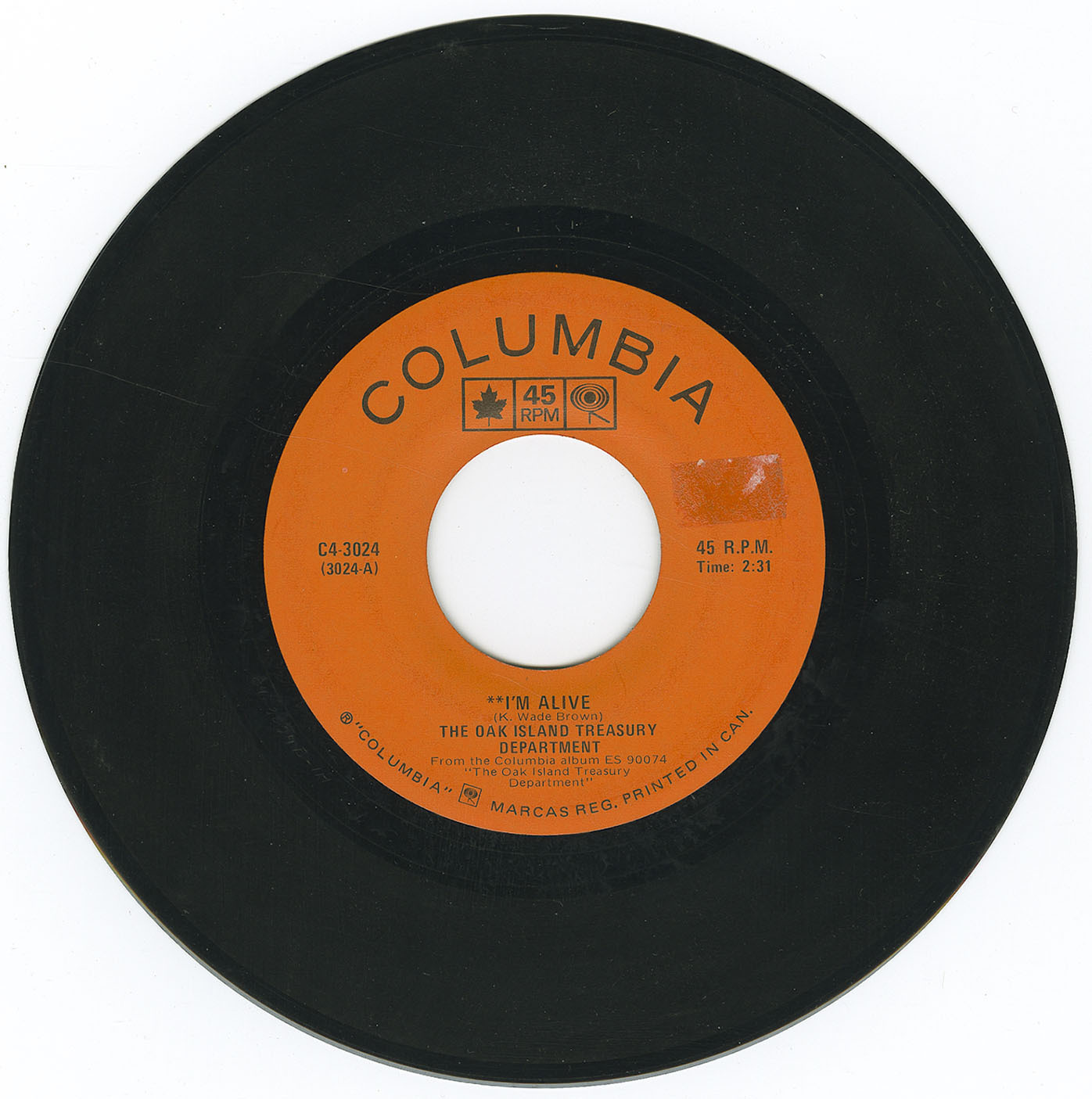 45-Oak Island Treasury Department - Glory Glory bw I'm Alive VINYL 02