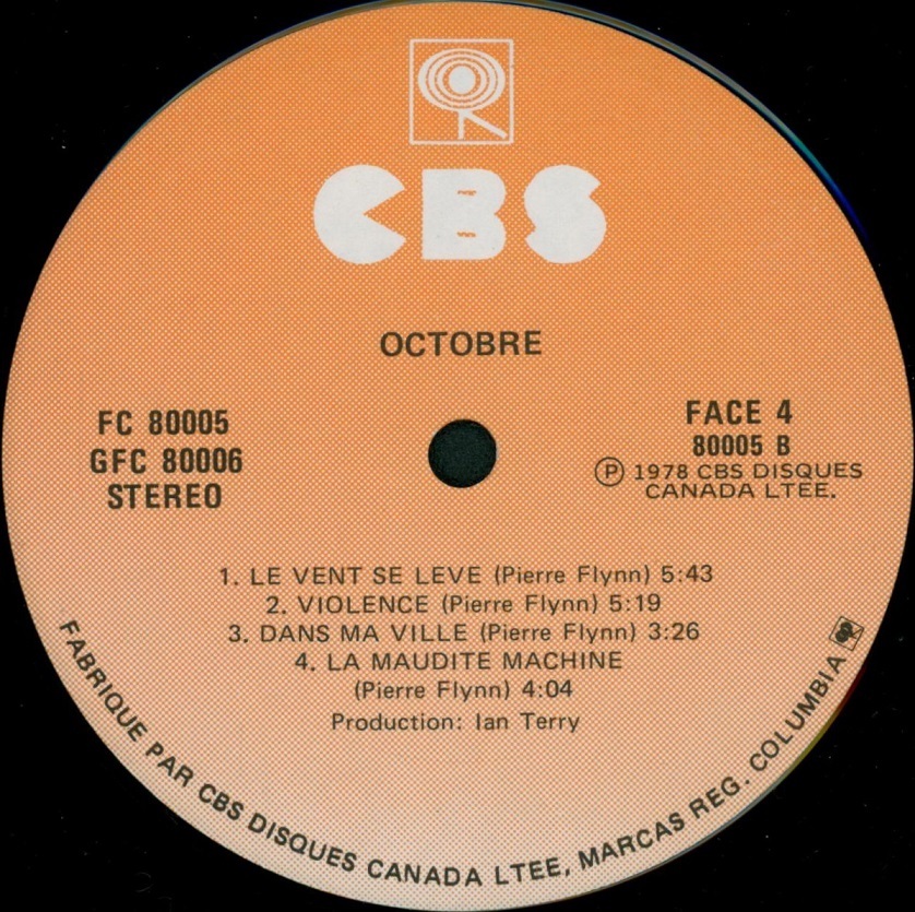 Lacquer cut and pressed at Columbia Records Pressing Plant, Don Mills, Ontario