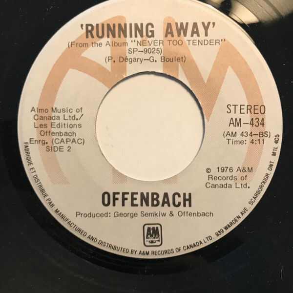 Offenbach - 'Never Too Tender' b/w 'Running Away'