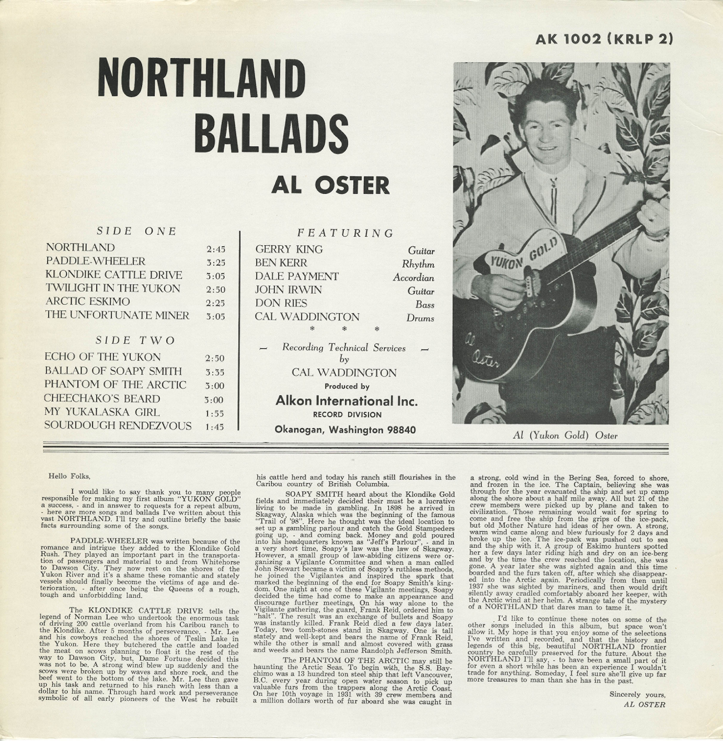 Across more than sixty original northern ballads, numerous LPs released in Canada, the United States, Germany, and Belgium, and a lifetime of self-driven historical research, Al Oster preserved the characters, legends, and landscapes of the Yukon and Alaska with a dedication unmatched in Canadian folk music. He was, as many have called him, the Northland Balladeer — a songwriter who transformed the lives of miners, stampeders, dreamers, outlaws, and lonely travellers into a lasting musical record of a frontier that few understood as deeply as he did.