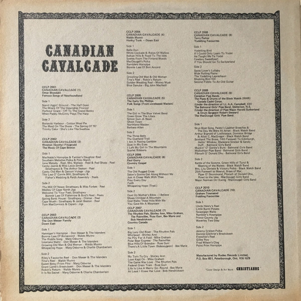 Label: Canadian Cavalcade CCLP 2008