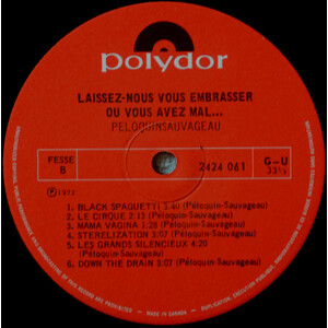 The "Us" in Let us kiss you where it hurts is CLAUDE PÉLOQUIN, controversial poet, and JEAN SAUVAGEAU, electronic music pioneer. Together after memorable trips and artistic happenings throughout the 60's, they came up with this eccentric avant-garde masterpiece. With topics ranging from revolution (Monsieur Emiliano), to exploitation (Monsieur L'Indien), vasectomy (Sterilization) or even scatology (Mama Vagina), the record exploded onto the local scene during the dark ages of Quebec Pop Music (something very similar to what's happening now).