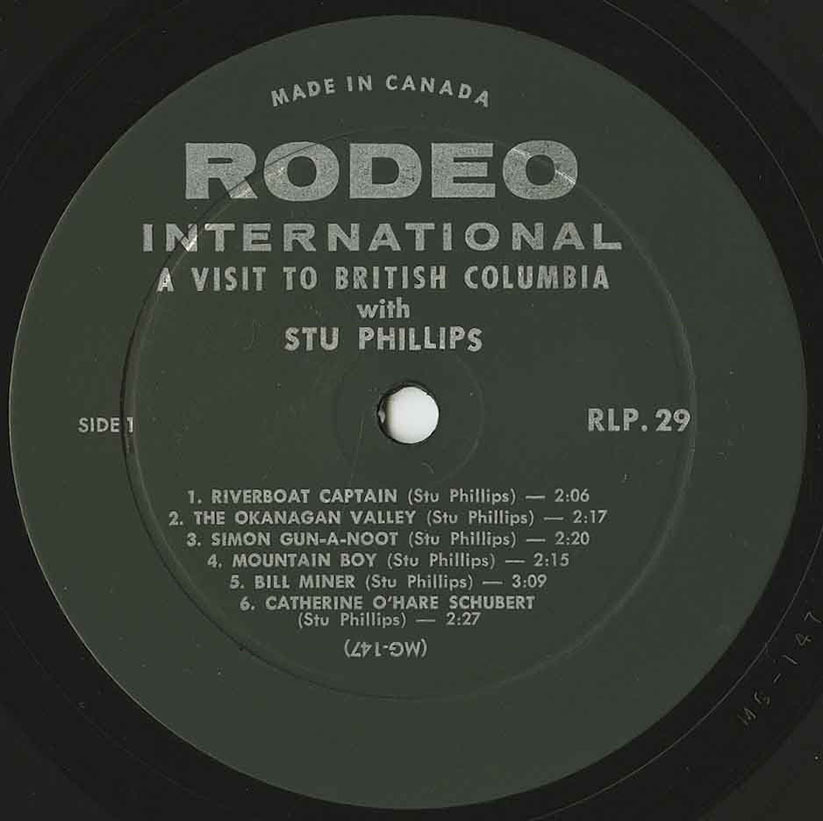 A talented songwriter with a passion for national folklore, Phillips released a series of historically themed LPs in 1957, including Echoes of the Canadian Foothills (Rodeo RLP 17), Visit Old Québec (Rodeo RLP 20), and A Visit to British Columbia (Rodeo RLP 29) which blended original ballads with traditional tunes celebrating early Canadian settlers, Indigenous stories, and legendary landmarks. His lyrical storytelling and gentle delivery became a signature style, setting him apart from Nashville contemporaries.