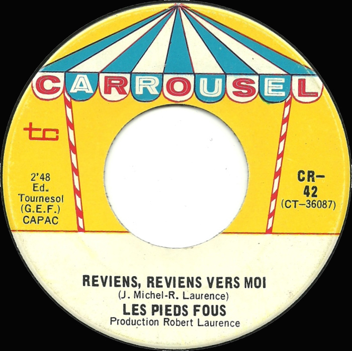 A second 45 was issued in 1968 on the Carrousel label, Reviens, reviens vers moi backed with Fleur de mon cœur, showcasing a stronger francophone pop-rock sound.