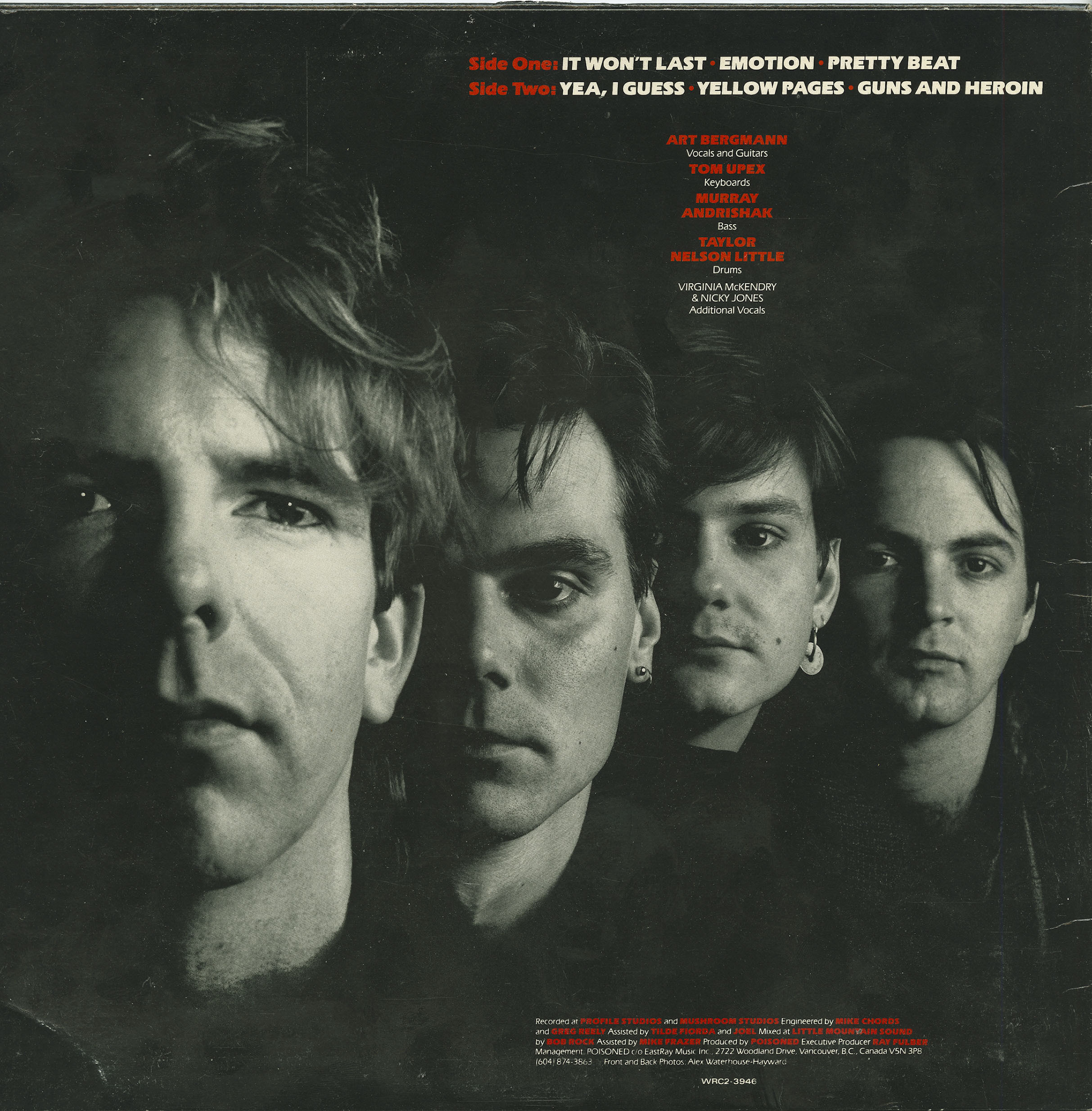 Recorded at Profile Studios and Mushroom Studios, Vancouver, British Columbia