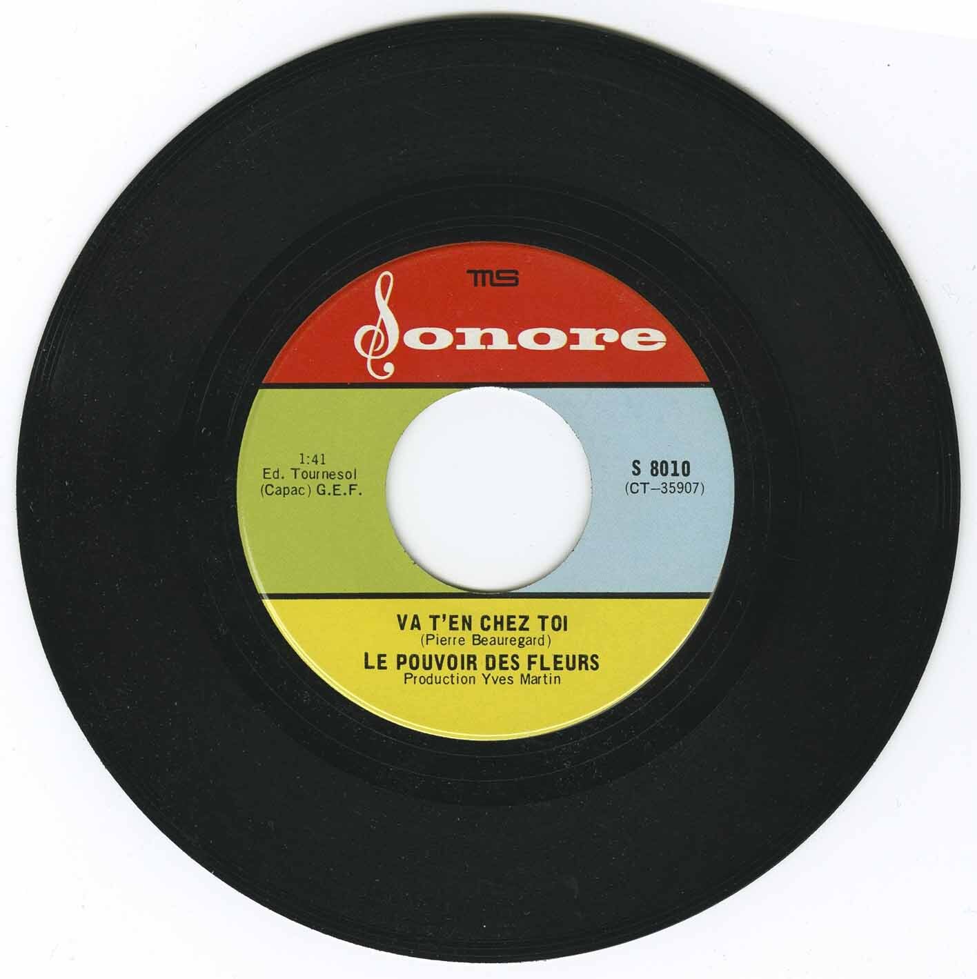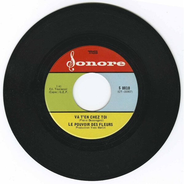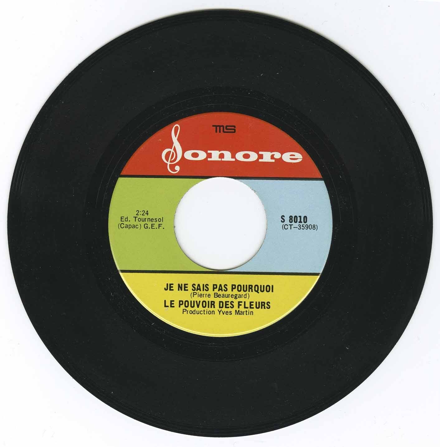Originally from Saint-Jean-sur-Richelieu and first known as Les Consuls, the group included Jean-Marc LaHaye (vocals), René Labelle (bass), Mario Landry (organ), and others. They rebranded as Le Pouvoir des Fleurs just in time for this one-off on the tiny Sonore label—now a collector's grail for fans of 60s Quebecois garage.
