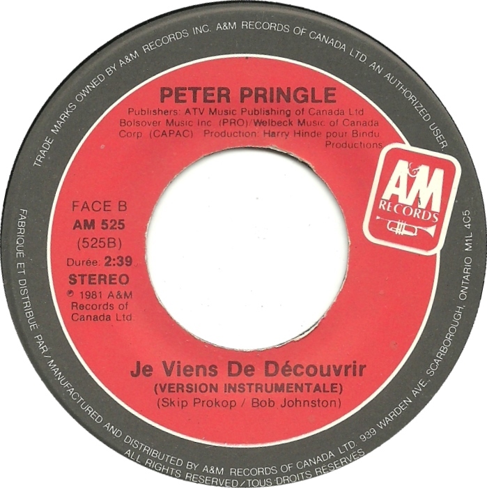 Pringle, Peter - Je Viens De Découvrir b/w Je Viens De Découvrir (Version Instrumentale) (picture sleeve)