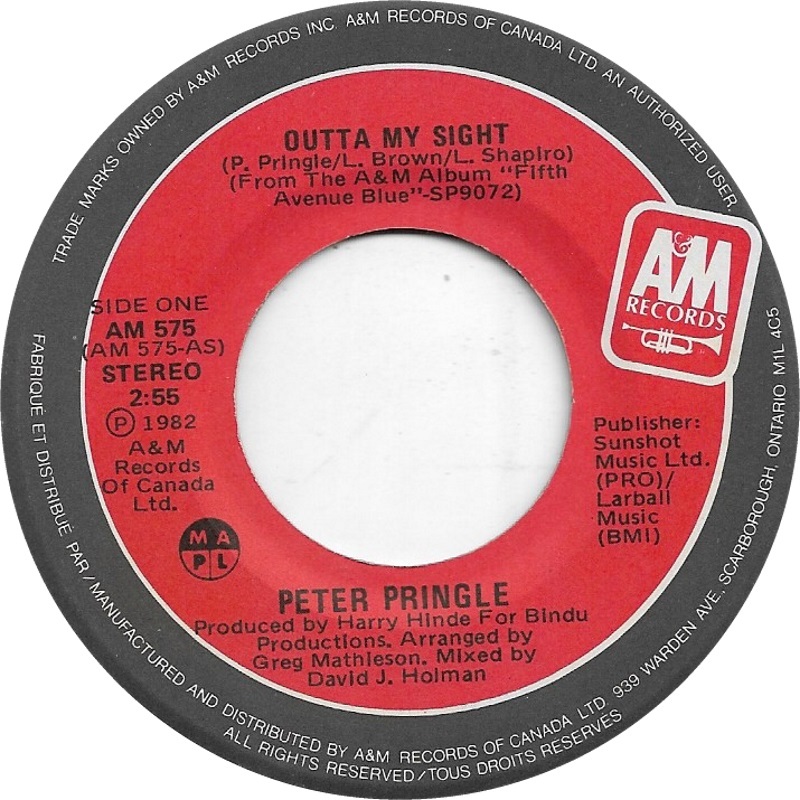 Pringle, Peter - Outta My Sight b/w Why We Do What We Do (picture sleeve)