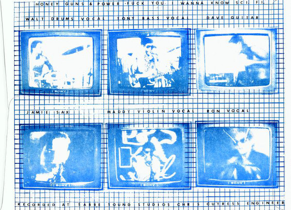 “Science Fiction” (listed as “Sci-Fi” on the original EP) became the group’s most ambitious studio creation. Clay, frustrated by how the song collapsed into brute force live, used tape delay and overdubbed saxophone lines to create a layered, space-age dialogue between two horns. Recording the track in a bedroom-turned-isolation booth filled with glow-in-the-dark star maps and model spacecraft only reinforced the sense that the song belonged to another atmosphere entirely. The result was punk filtered through science fiction, late-night television, and experimental studio play—an approach virtually unheard of in the local scene at the time. Elsewhere on the EP, Faulk’s “Fuck You” and “I Wanna Know” delivered blunt, personal statements, while Nelson’s “Money, Guns and Power” took aim at corporations, authority, and the forces flattening music and society.