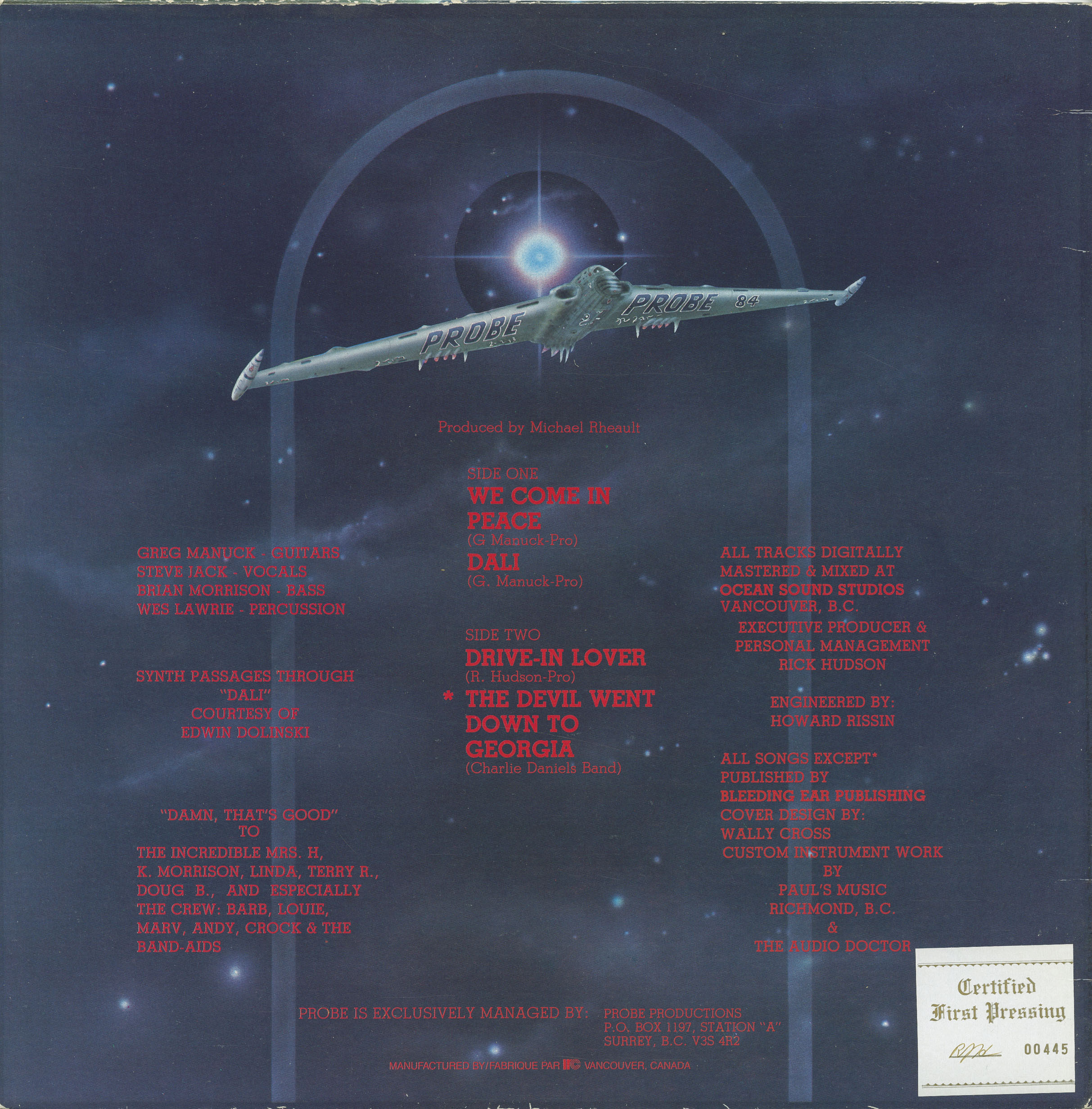 Management: Probe Productions, P.O. Box 1197, Station “A”, Surrey, B.C. V3S 4R2