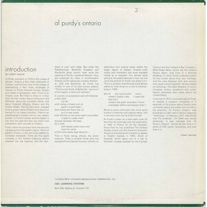 Al Purdy was born in Wooler, Ontario in 1918. He best known, along with Milton Acorn, Alden Nowlan, and Patrick Lane, as a "working class" or "poet of the people" writer. In his teens he road the rails and later spent six years in the RCAF. After several years as a labourer in British Columbia and Ontario, Purdy started earning his living as a writer in the early 1960's. A restless traveller, Purdy is well-known internationally, not only as a poet, but also as a TV and radio play writer, anthologist, editor, travel writer and book reviewer. Purdy won the Governor General's Literary Award in the poetry category in 1965 with The Cariboo Horses and again in 1986 with Collected Poems, 1956-1986. In regard to his status as a "working class" poet, he won the 1987 Peoples' Poet Award (in memory of Milton Acorn) for Collected Poems and received the Order of Canada in 1982.