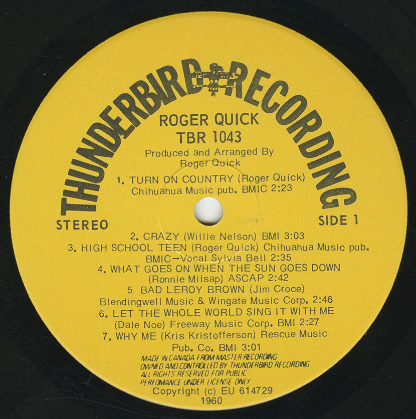 Roger Quick: vocals, lead guitar, rhythm guitar