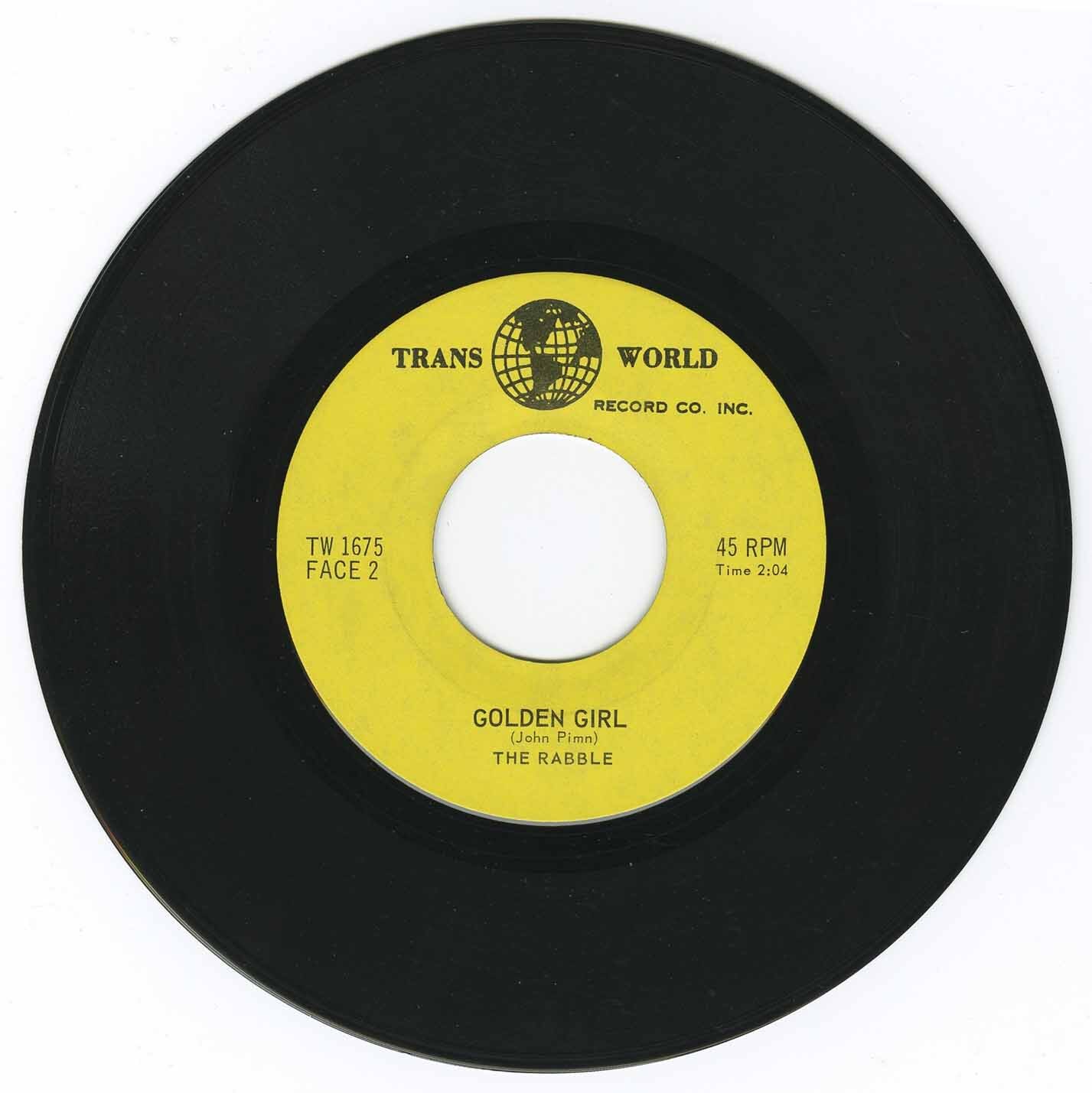 'Golden Girl''s lithe guitar riffs might suggest otherwise, but the Rabble were freaks at heart. Regular gigs at Gary Eisenkraft's Penelope club, which had also hosted the Fugs and the Mothers of Invention, probably helped solidify that reputation. Then the band made a series of unwise choices that, in hindsight, probably hastened their demise. As Harris tells it, "After 'Golden Girl' we got very avant garde. Once we got Walter Reilly as replacement drummer, we left the song off the first album because he wasn't on it. So we re-recorded it, and were going to put it on Give Us Back Elaine!, but then Trans-World got the deal to release the first album in the US, and they put 'Golden Girl' and 'Laughing' on that version."