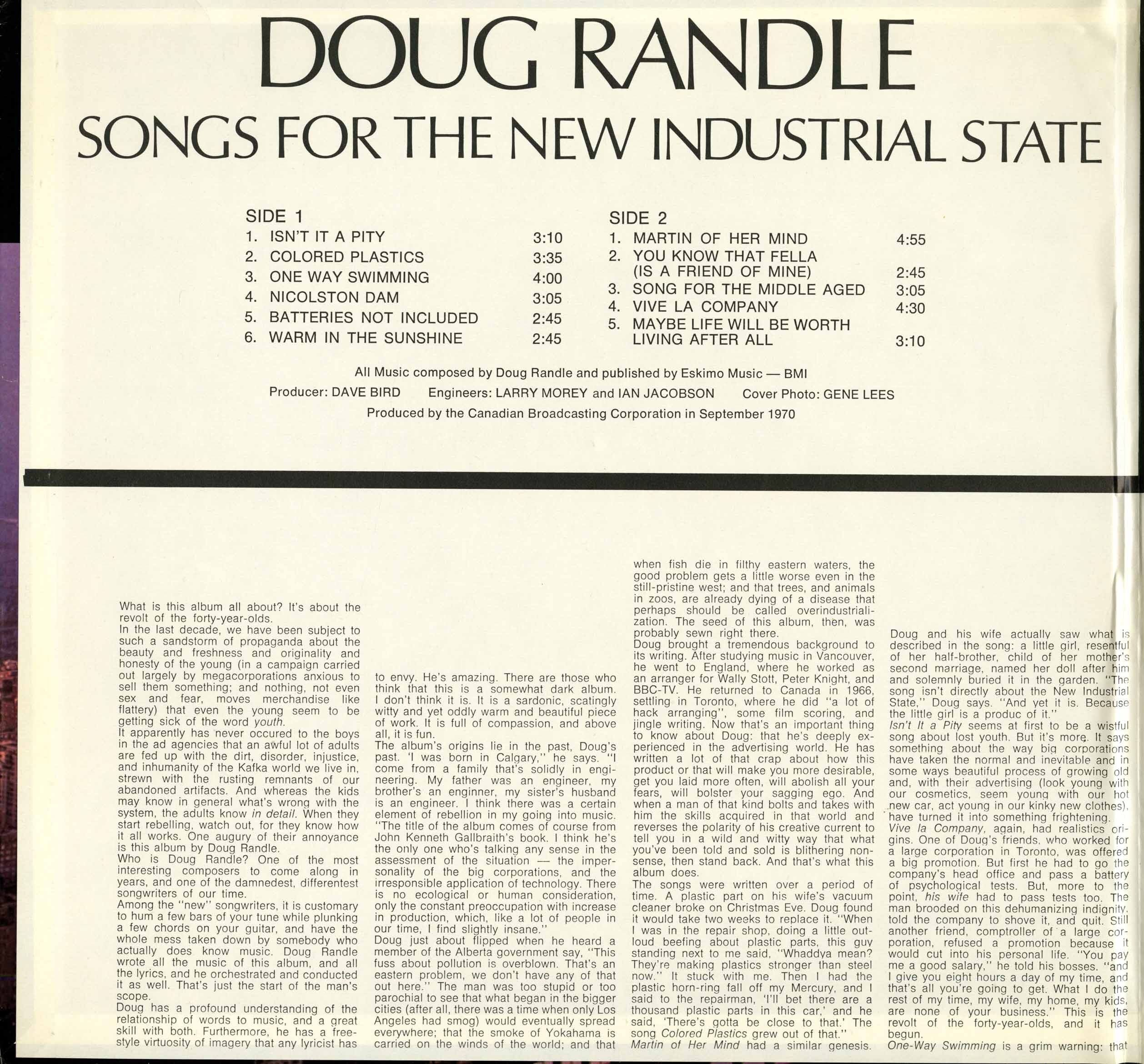 Doug Randle passed away in 2013, leaving behind a career that spanned jazz clubs, children’s television, jingles, musicals, and one brilliant, unexpected pop masterpiece. From the CBC transcription records of the 1960s to the cult rediscovery of Songs for the New Industrial State, his work is now recognized for its honesty, sophistication, and enduring relevance.